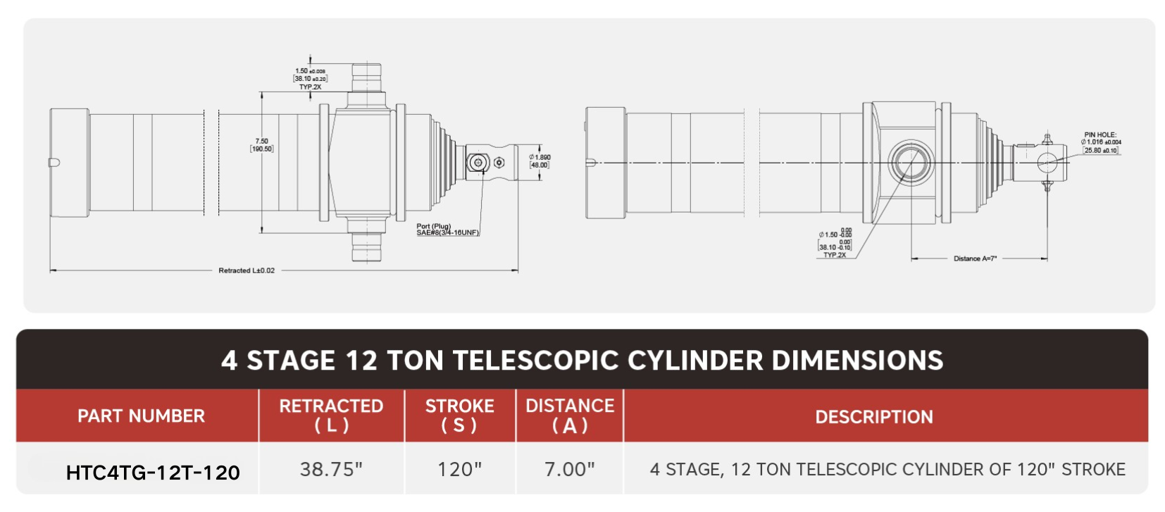 "HTC4TG-12T-120", 4 स्टेज, 120 पैकी 12 टन" स्ट्रोक टेलिस्कोपिक सिलेंडर