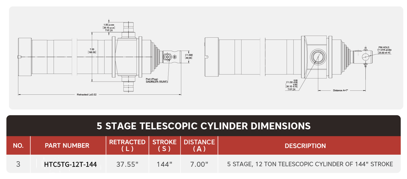 "HTC5TG-12T-144", 5 स्टेज, 144 पैकी 12 टन" स्ट्रोक टेलिस्कोपिक सिलेंडर